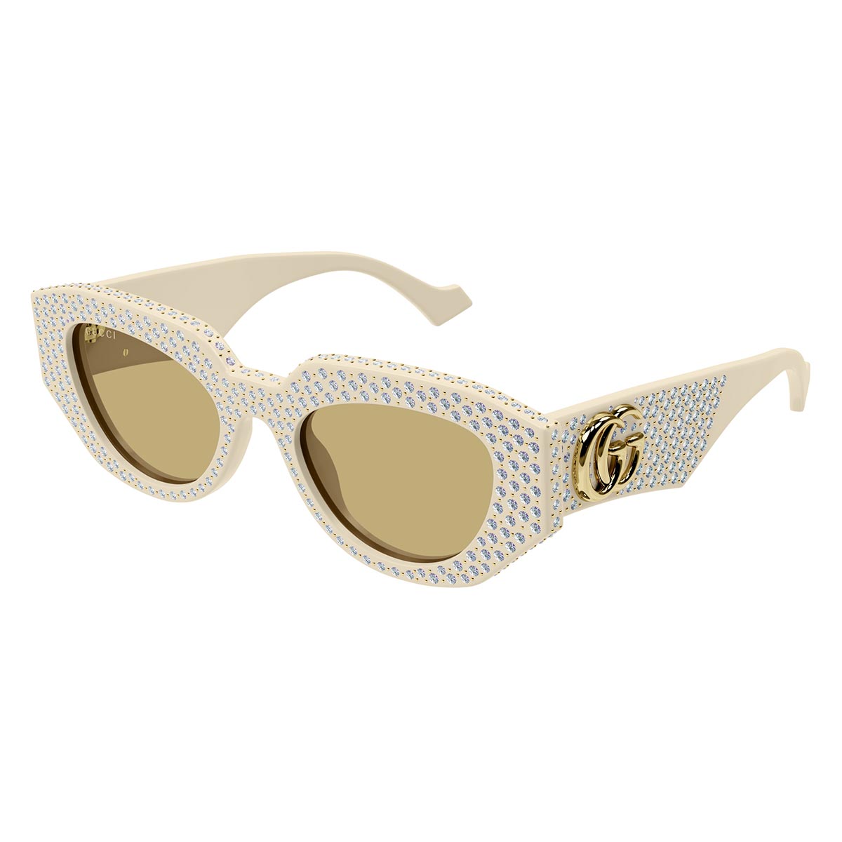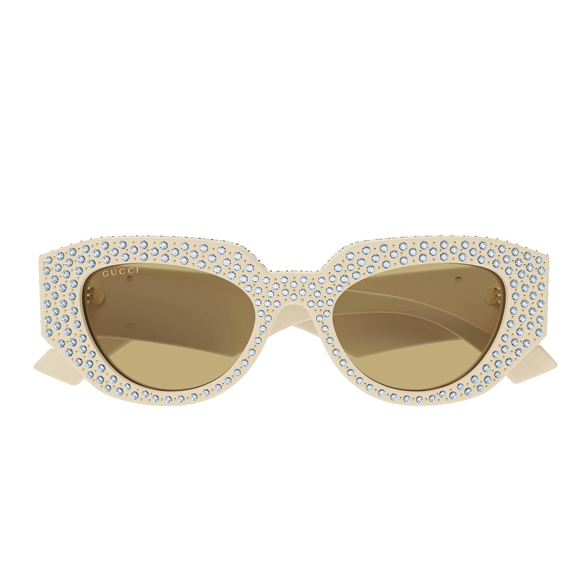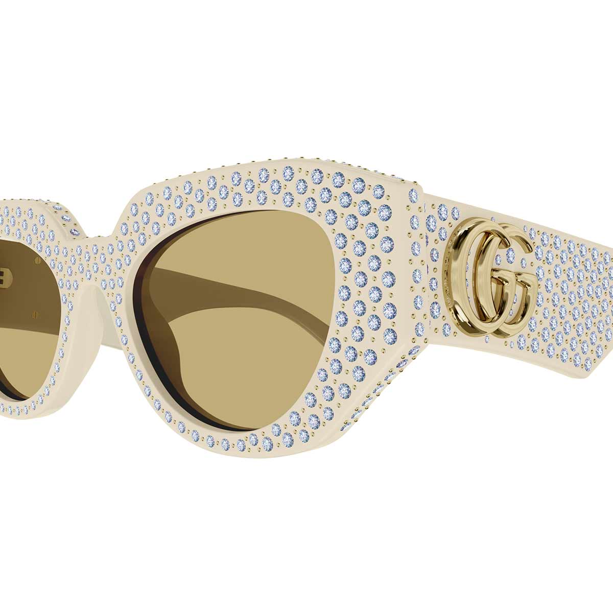 Ecco a voi gli Occhiali da Sole Gucci Donna GG1421S 005. Esuberanza ed eccentricità caratterizzano i colori, le forme e le linee essenziali di questo modello, per un look cool e di tendenza. Ispirato a uno stile “gender fluid”, trasposto in un look street disinvolto. Montatura dalla forma cat-eye geometrica in audace acetato tempestato di Strass, pensata per un look ultra femminile. Il logo GG Running impreziosisce le aste audaci.