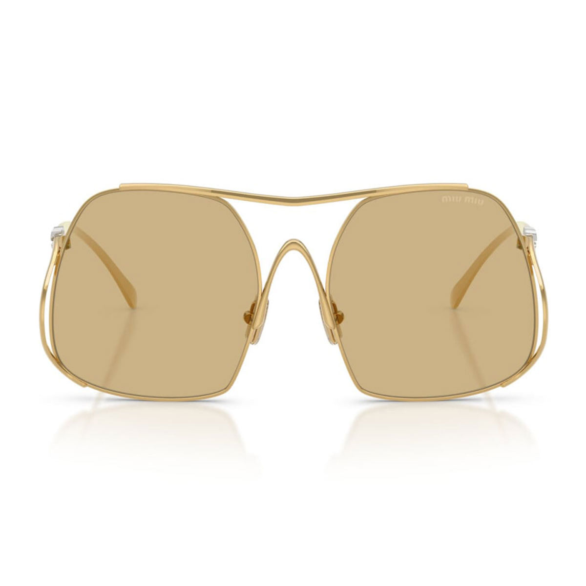 Gli occhiali da sole Miu Miu MUA55S 5AK10R da donna sono la sintesi perfetta tra audacia e raffinatezza. La montatura in metallo color oro lucido cattura la luce con eleganza, mentre le lenti gialle donano un tocco vivace e distintivo, ideale per chi ama sperimentare con il proprio stile. Le forme geometriche e il design oversize rendono questo modello irresistibilmente moderno, perfetto per esaltare i lineamenti e aggiungere personalità a ogni look. Realizzati con materiali di alta qualità, rappresentano l’essenza dello spirito Miu Miu: originale, brillante e sempre all’avanguardia nella moda eyewear.