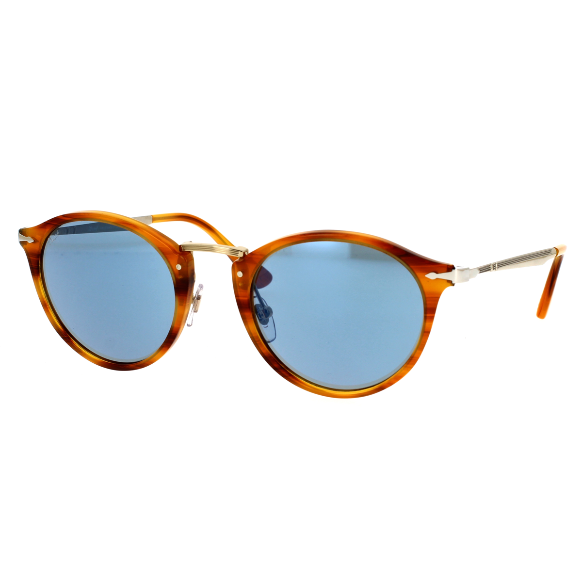 Ecco a voi gli Occhiali da Sole Persol PO3166S 960/56. Tutto il meglio del design e della tecnologia in una montatura unica ed esclusiva che è diventata inconfondibile icona del brand. La montatura Striato marrone abbinata alle lenti Azzurre e con aste in metallo rendono questo occhiale unico.