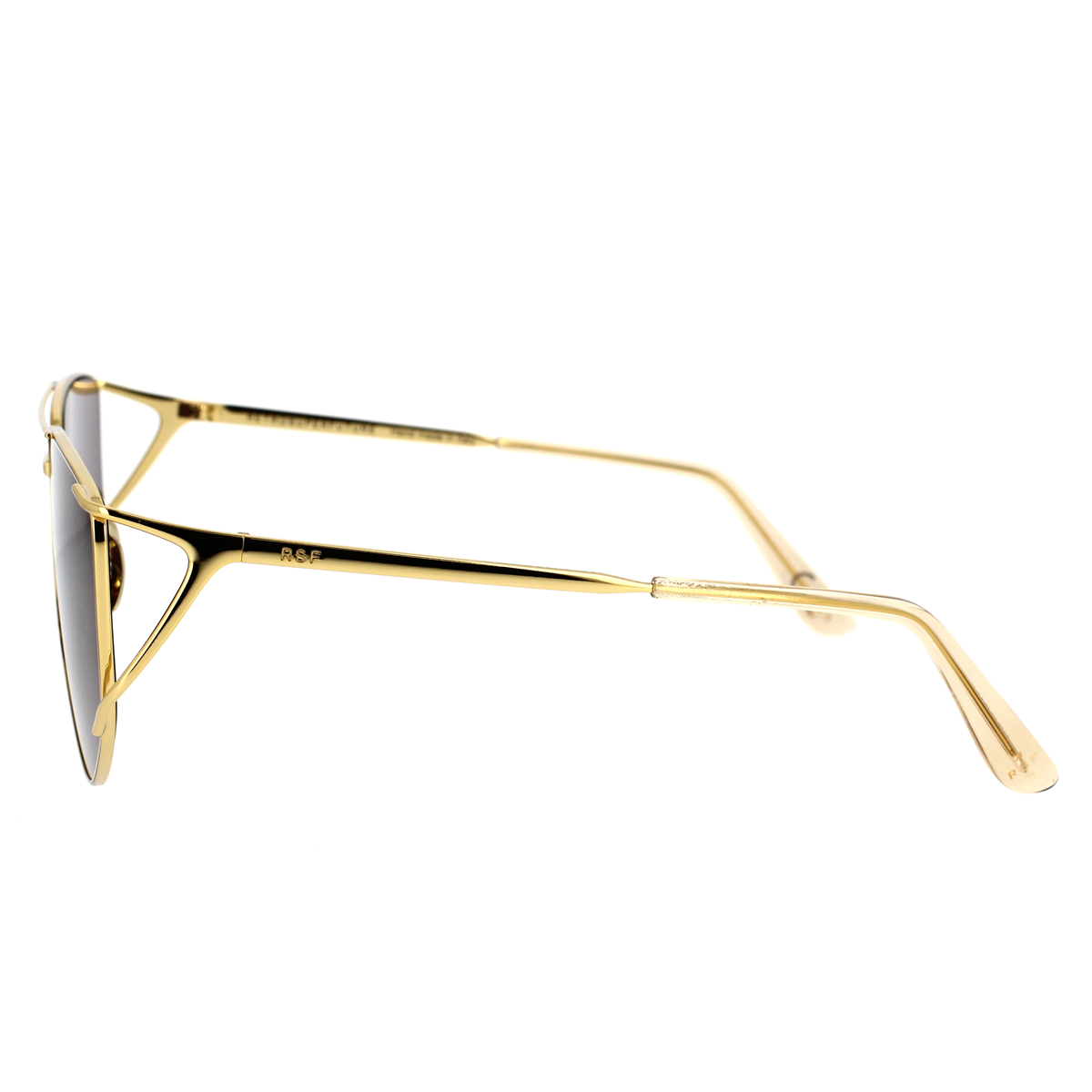 Gli Occhiali da Sole RetroSuperFuture Premio Premio Black GMF riportano una silhouette slanciata che sottolinea la comprensione di uno stile senza tempo. Premio è un'interpretazione fresca e moderna del concetto di aviatore di RSF che rappresenta l'approccio al design combinando caratteristiche estetiche uniche con aspetti funzionali e tecnici degli occhiali. Le lenti sono modellati con metallo tubolare, che gli conferisce una qualità architettonica distintiva, con dettagli rinforzati che aggiungono struttura mantenendo strategicamente le aree cave per sottolineare il tocco leggero per un uso quotidiano funzionale. Questa versione è disponibile in oro lucido con lenti nere.