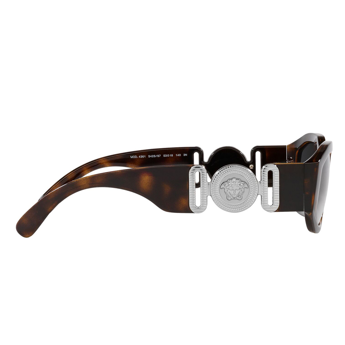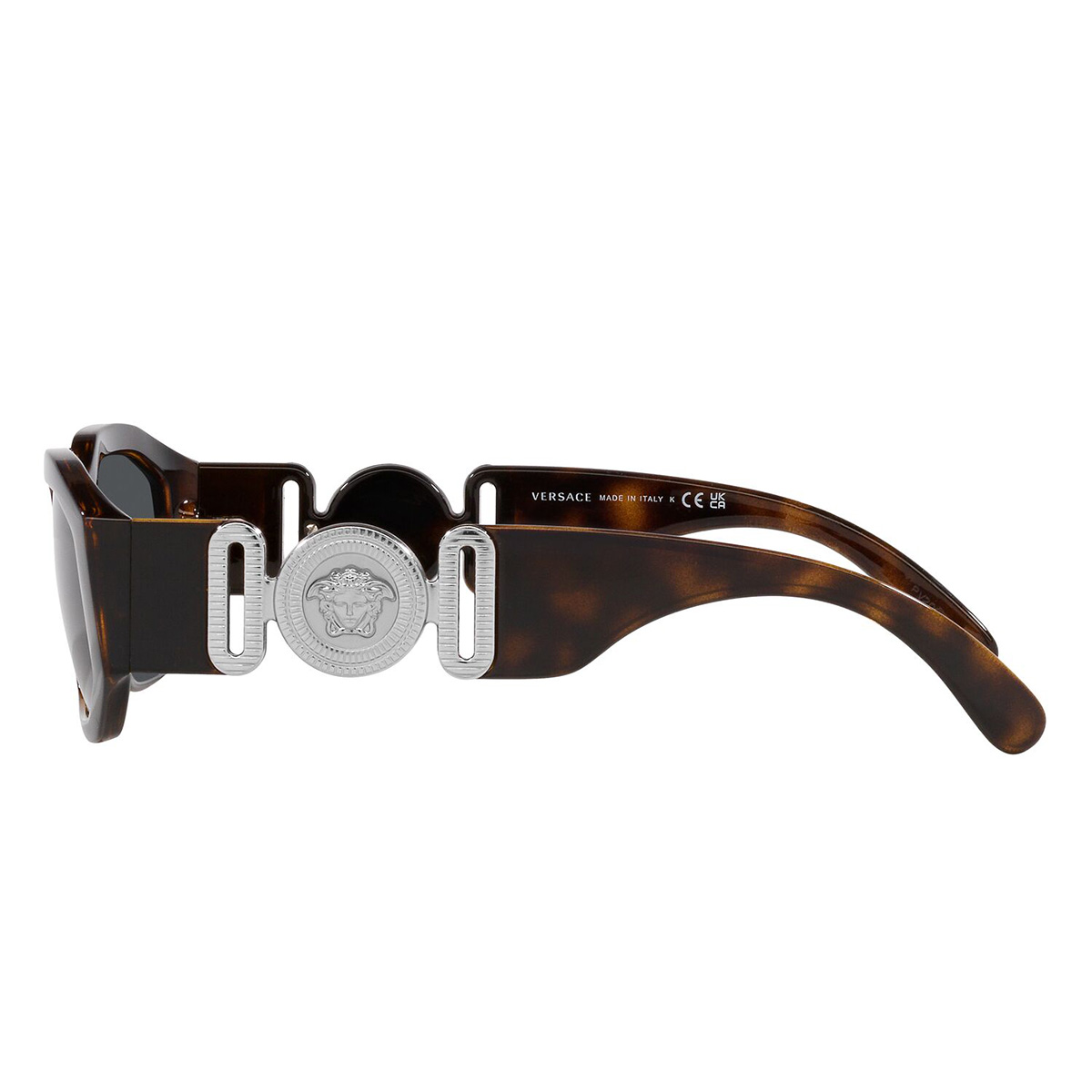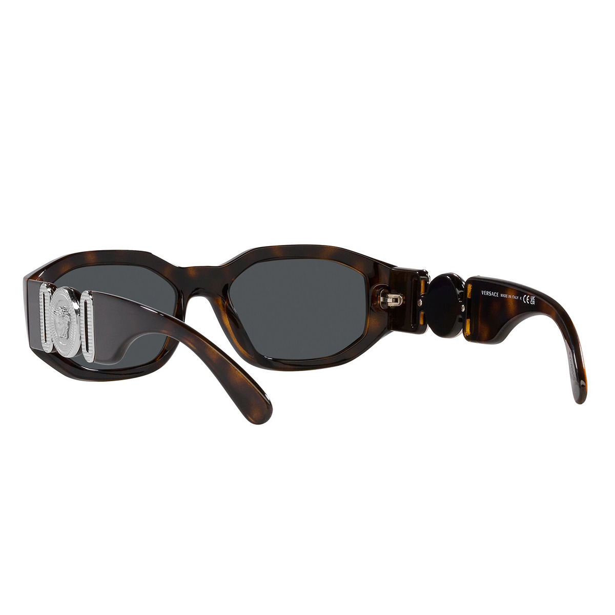 Le aste larghe, le lenti strette caratterizzate dalla forma audace e decorati dal classico medaglione medusa, rievocano lo stile sfarzoso dell'icona hip hop oltre a fornire una protezione elevata dai raggi UV.