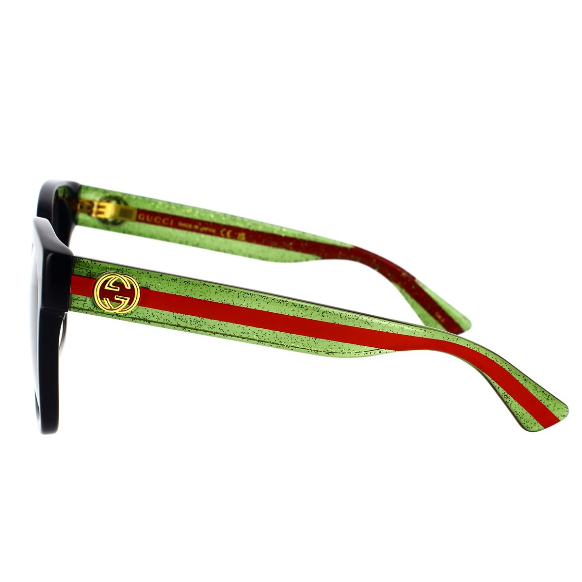 Questi occhiali Gucci GG0034SN 002 presentano una forma rettangolare dal design ampio e femminile, caratterizzato dagli esclusivi e apprezzatissimi dettagli sulle aste verdi glitterate su base rossa. Look alla moda del brand esaltato dal logo dorato su entrambe le aste. Non passerai inosservata con questi magnifici occhiali abbinati ai tuoi outfit! Non farteli scappare.