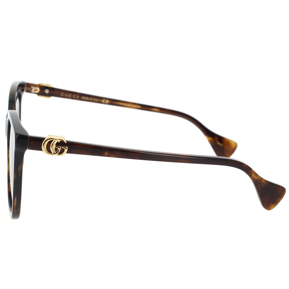 Morbida forma cat-eye super femminile e facile da indossare in acetato pieno. Iconico logo GG mini running su entrambe le aste dritte. Comode punte terminali piatte.