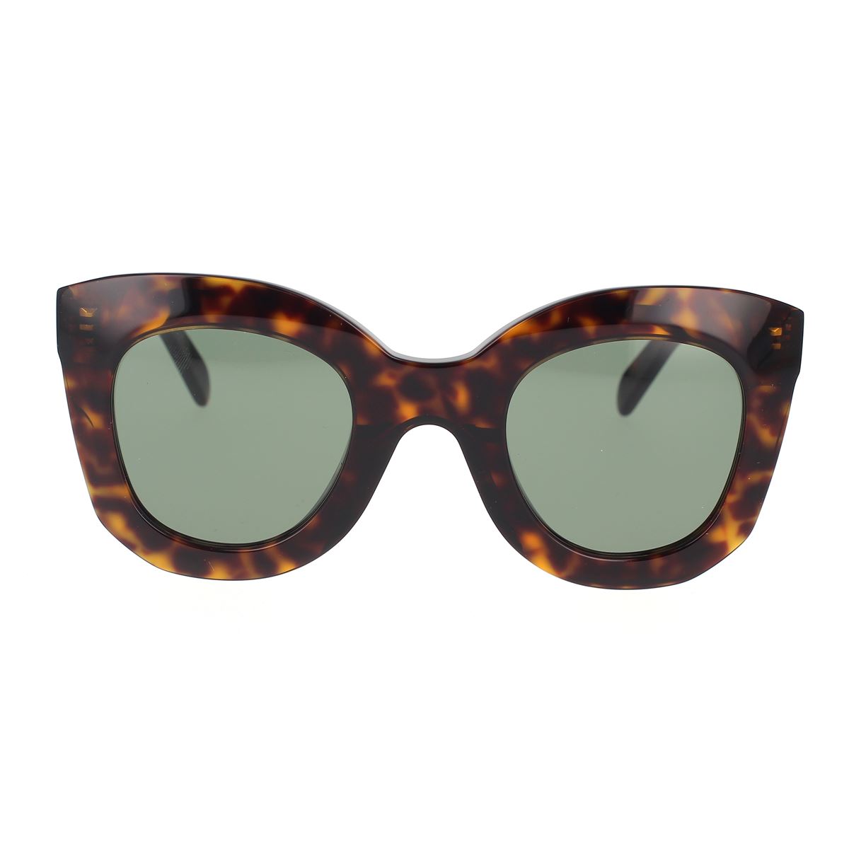 Questi occhiali da sole dalla forma geometrica sono la conferma dello stile chic e disinvolto di Celine Eyewear. Con una montatura in havana scura e lenti verdi, il design è completato dall’iconico logo sul frontale e sulle aste.