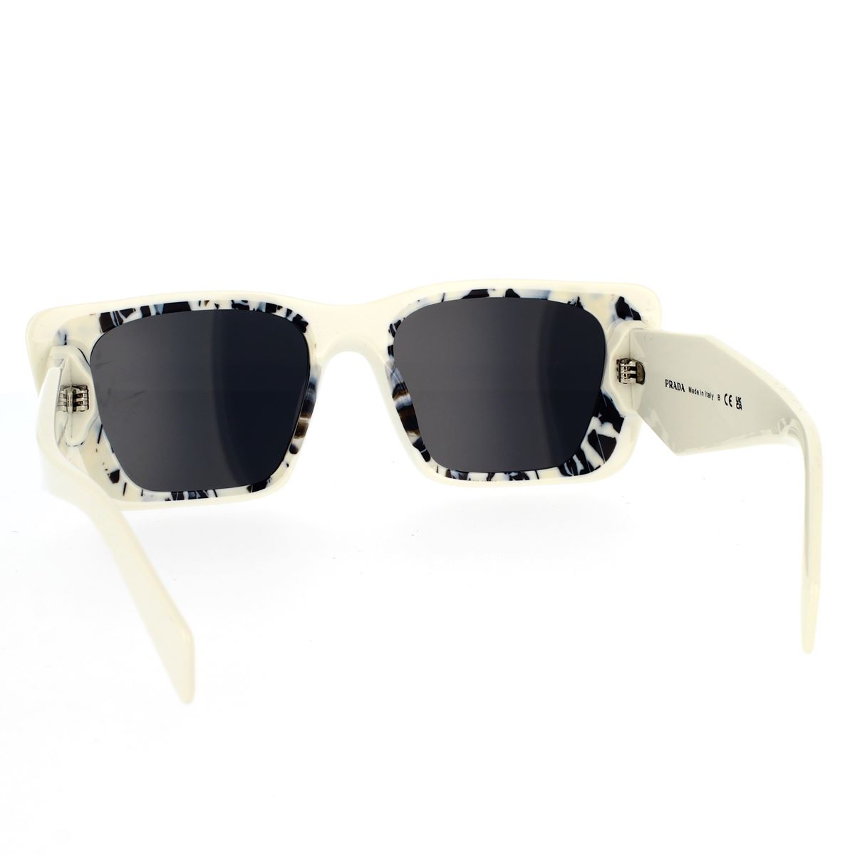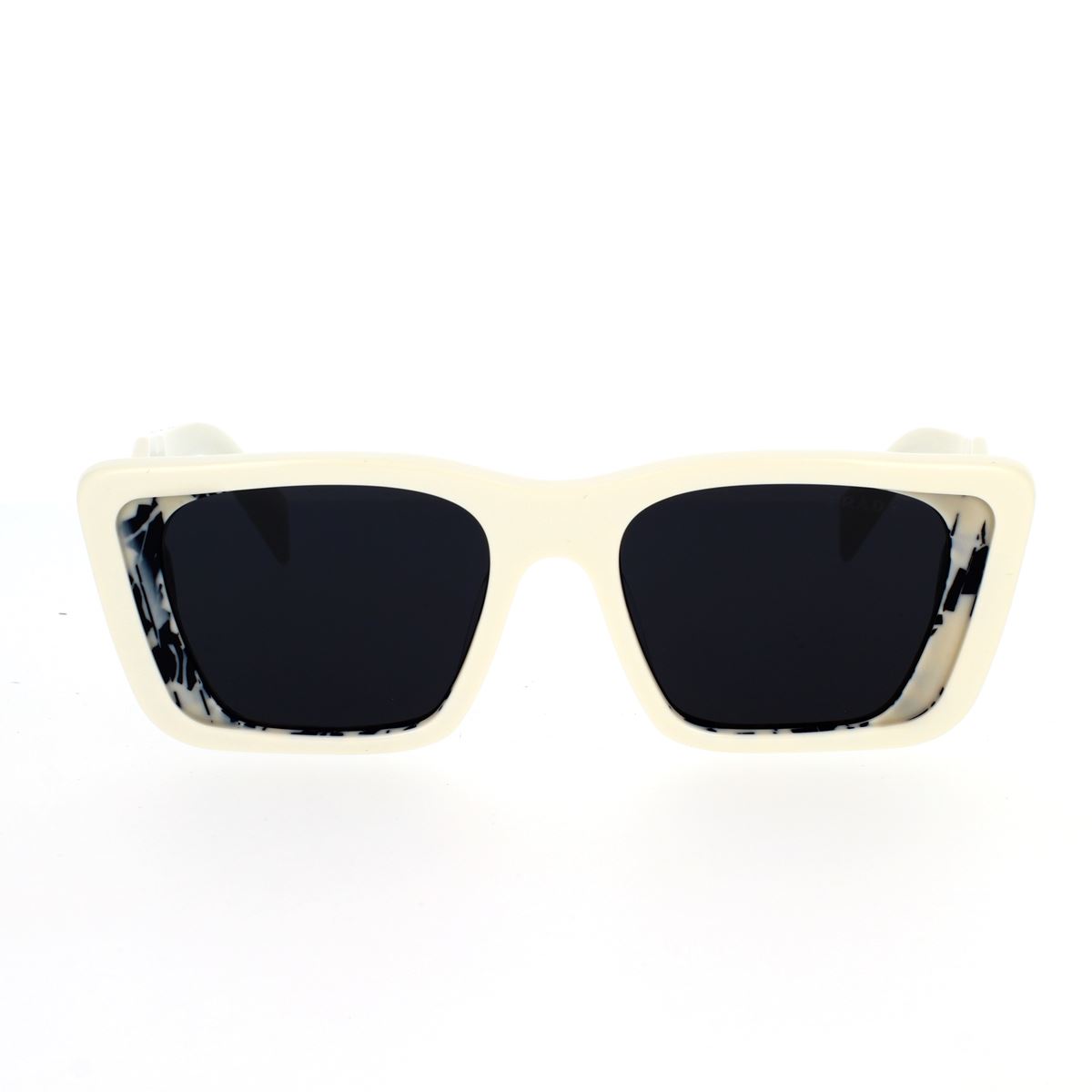 Occhiali da sole in acetato della collezione Prada Symbole. La montatura rettangolare risalta i profili all’avanguardia del frontale grazie a un’esclusiva combinazione di strati in acetato. La lavorazione tridimensionale delle aste è siglata da un’interpretazione iconografica del tradizionale logo Prada triangolo.