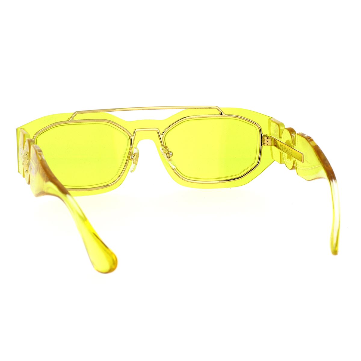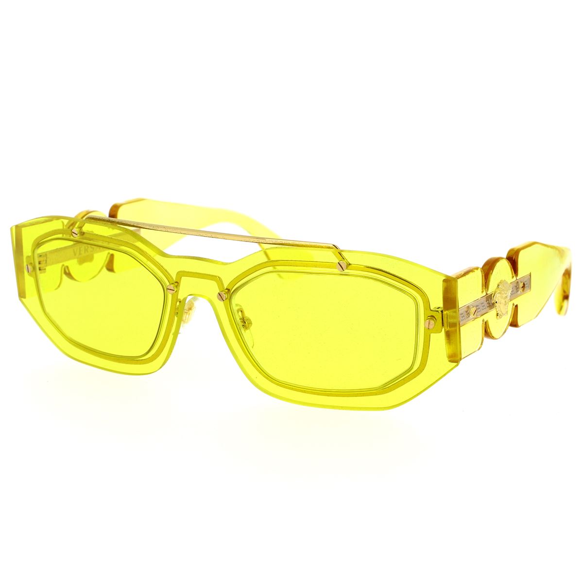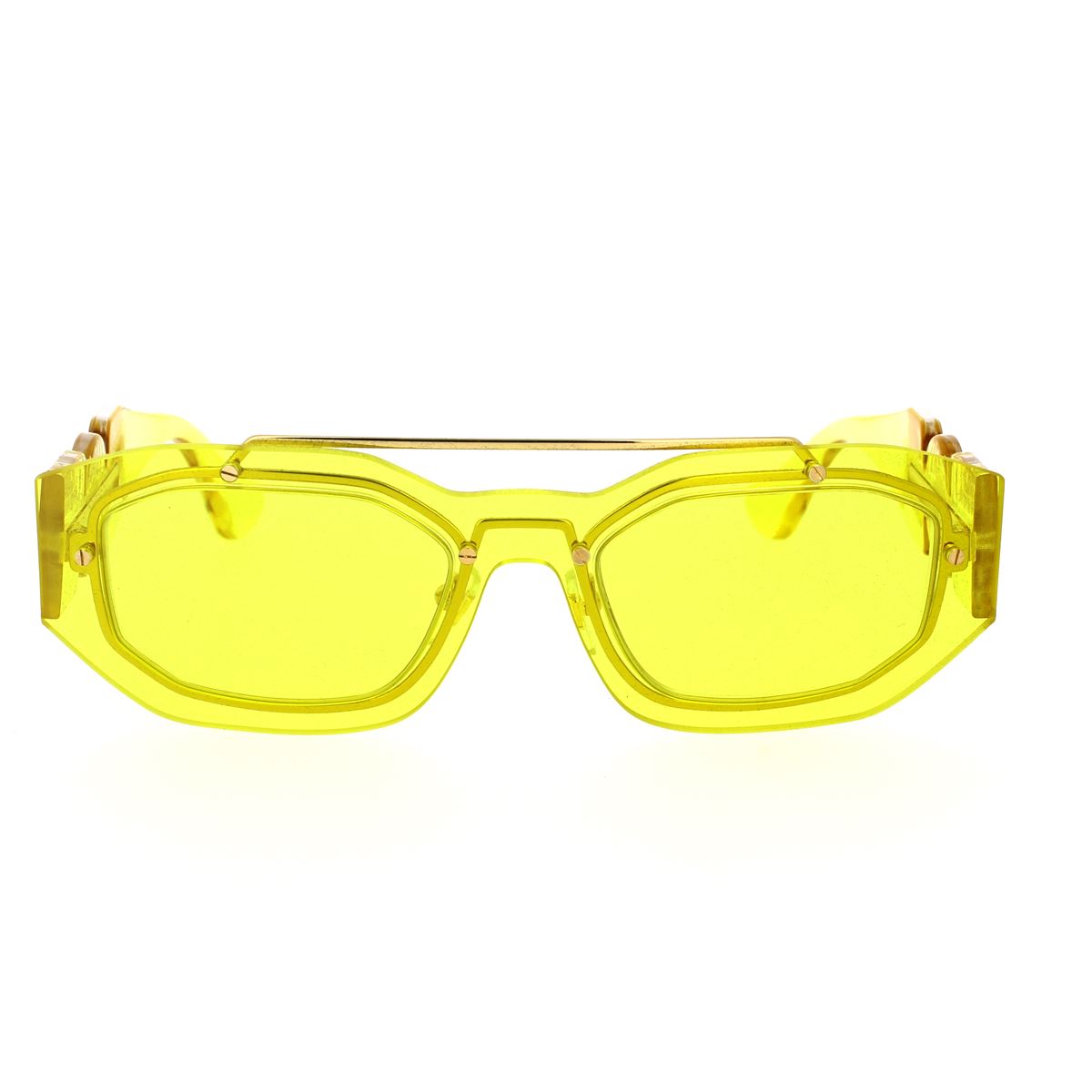 Questi Versace New Biggie VE2235 sono realizzati in metallo e acetato dalla forma irregolare. Il doppio ponte audace, aste larghe con logo medusa, tipico di Versace, rendono questo modello unico, inimitabile e dallo stile inconfondibile.