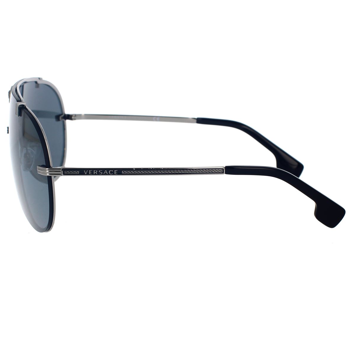 Stile, classe, elegenza, audacia: sinonimi del Versace VE2243. Lenti grigio chiaro con riflesso nero. La forma audace si sposa con l'uomo che non ha paura di essere notato. Dettagli curati nei minimi particolari, per donare un tocco di classe a chiunque lo indossi. Logo Versace in Gunmetal posto al centro delle lenti. Le aste in metallo grigio riportano il brand e la relativa trama in rilievo, impreziosiscono una montatura già perfetta.