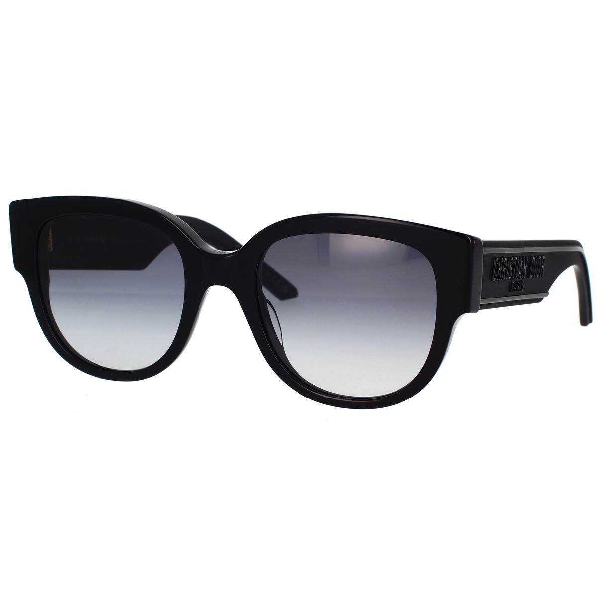 La montatura oversize in acetato nero conferisce un tocco di glamour agli occhiali da sole Wildior BU 10A1 firmati DIOR Eyewear. Completati da lenti grigie leggermente fumé, sono siglati dal logo della maison stampato a caldo lungo le astine per una riconoscibilità discreta, ma presente.