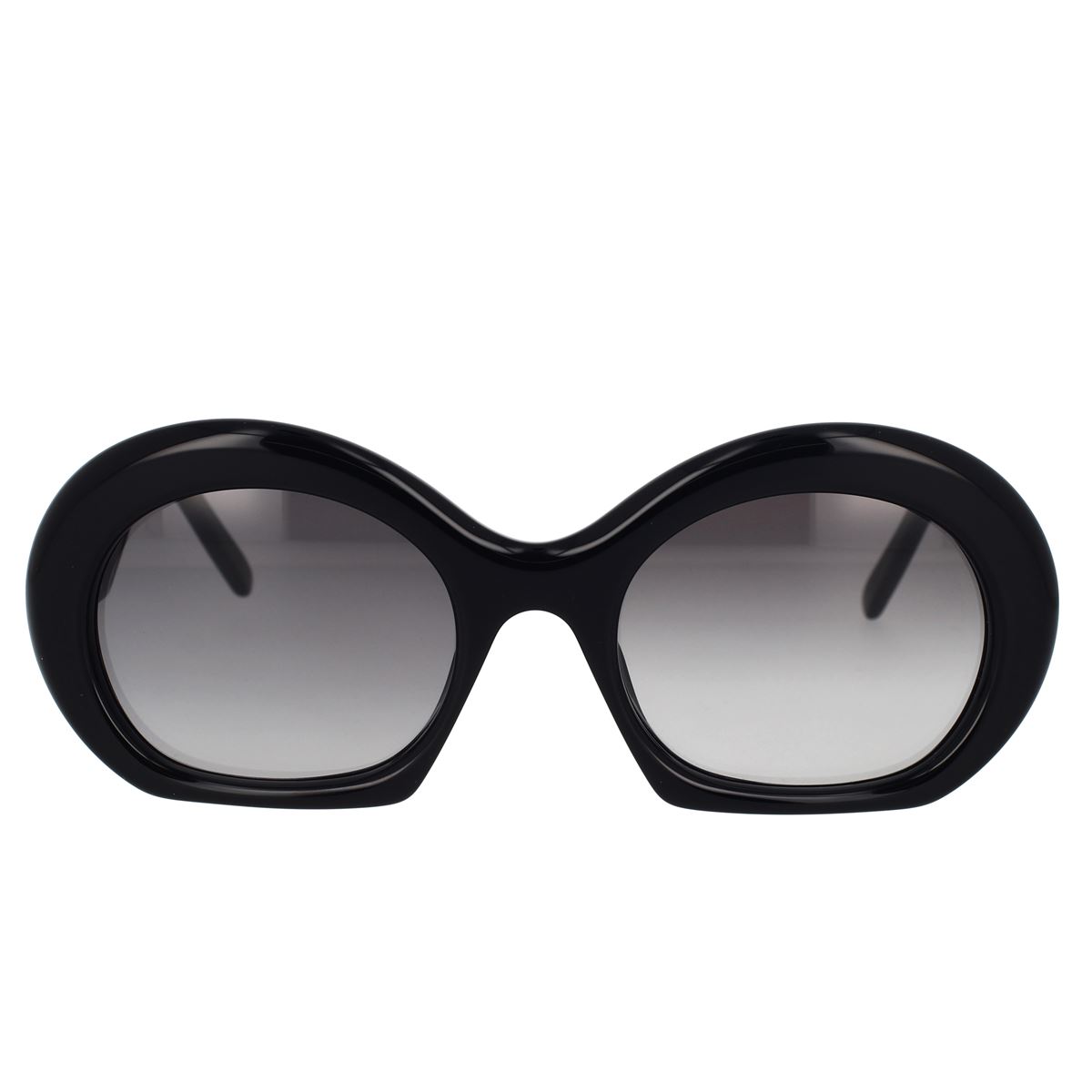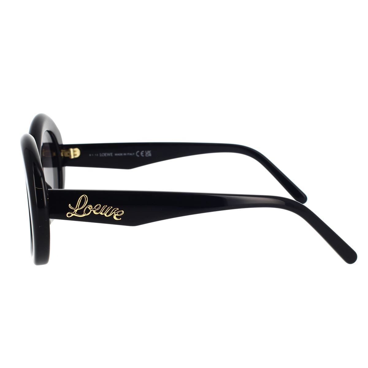 Questi occhiali da Sole Loewe LW40077I 5401B, caratterizzati dalla classica forma Rotonda, colpiscono per il loro stile esuberante ma mai banale. La montatura in acetato nero lucido è resa unica dal lato basso frontale. Le aste sono adornate dalla dicitura Loewe dorato.